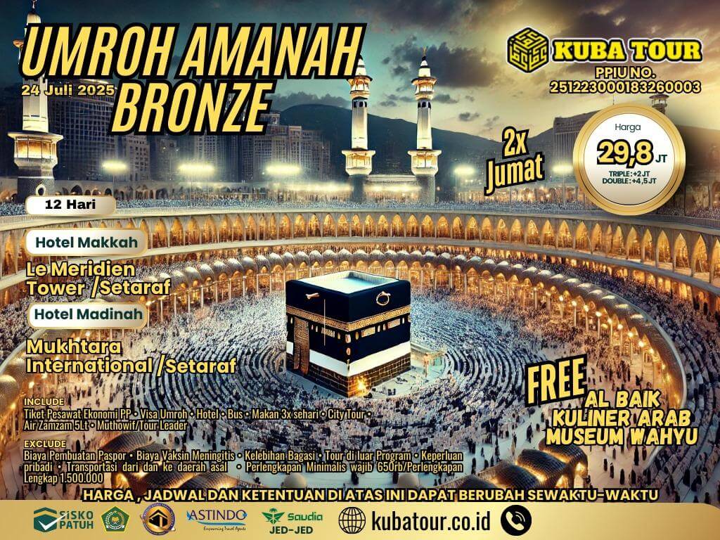 - JIKA HOTEL UNTUK JAMAAH UMROH ATAU HAJI YANG TERTERA DI FLAYER, BROSUR, FLAYER ATAU WEBSITE TERNYATA FULL BOOKED ATAU ADANYA FORCE MAJOR MAKA PIHAK KUBA TOUR TRAVEL AKAN MENGGANTI DENGAN HOTEL LAINNYA YANG SETARAF.