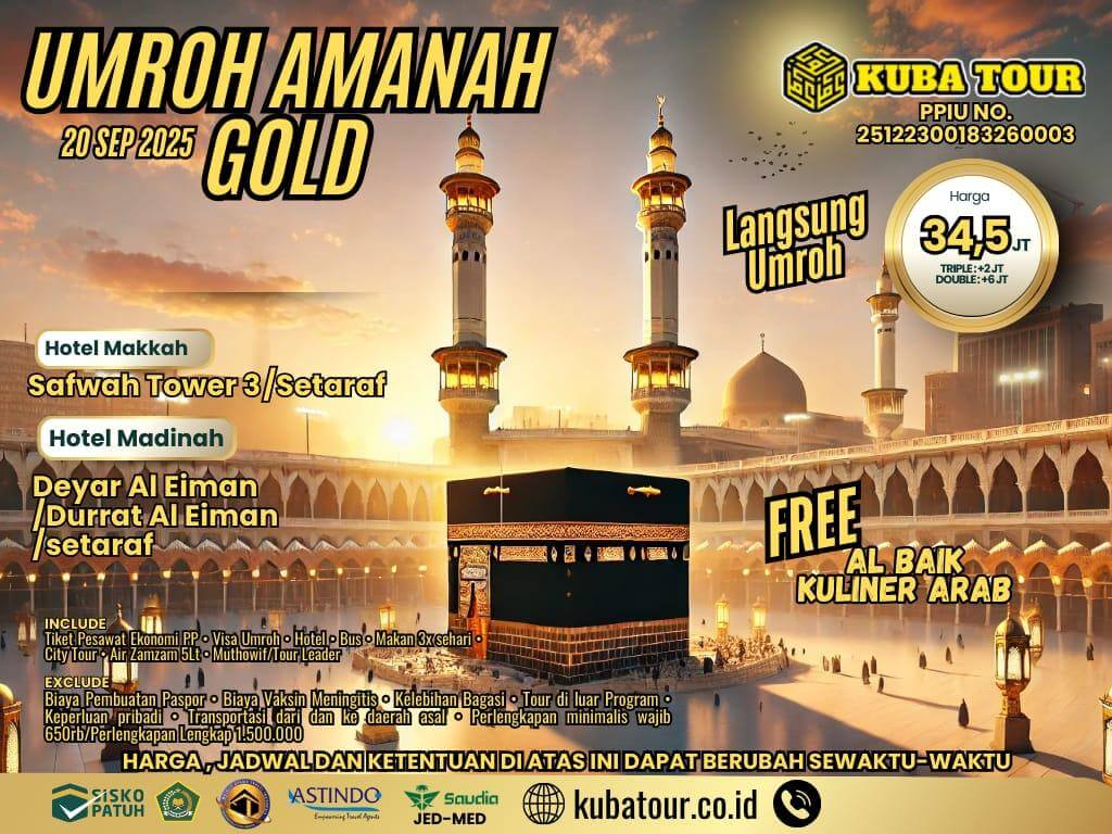 - JIKA HOTEL UNTUK JAMAAH UMROH ATAU HAJI YANG TERTERA DI FLAYER, BROSUR, FLAYER ATAU WEBSITE TERNYATA FULL BOOKED ATAU ADANYA FORCE MAJOR MAKA PIHAK KUBA TOUR TRAVEL AKAN MENGGANTI DENGAN HOTEL LAINNYA YANG SETARAF.